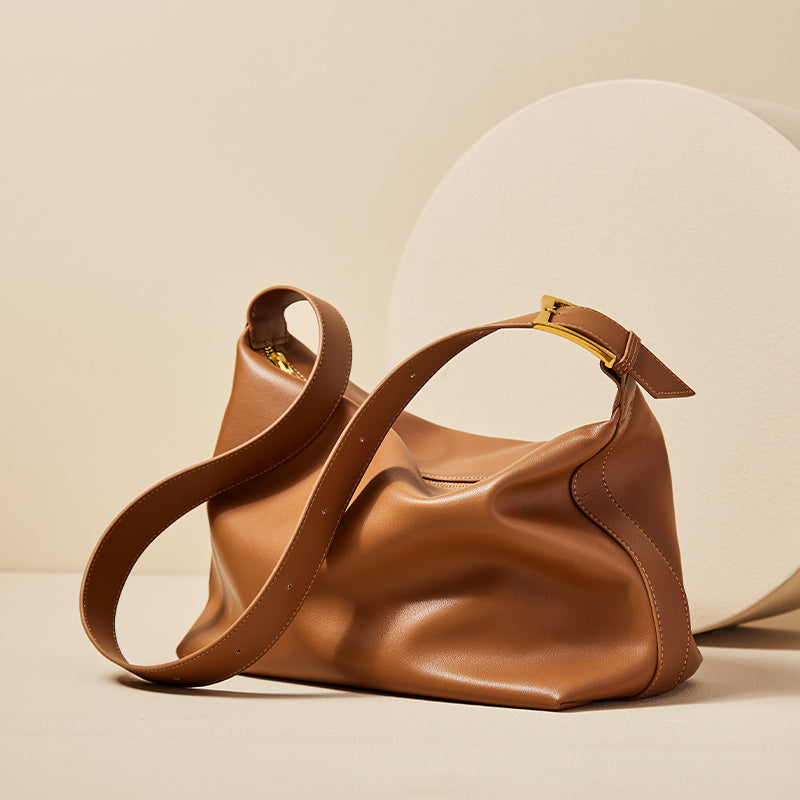 The bag features a secure zipper closure and comes in a versatile range of colors â Caramel, Midnight Black, Oatmeal, Milk Apricot, and Brown â making it easy to match with any outfit.